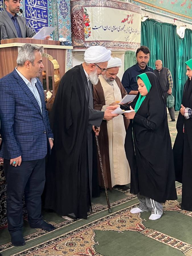 گفتنی است در اثناء مراسم نمازجمعه ، پس از ایراد بیانات جناب آقای کلونیان«رئیس اداره اوقاف و امور خیریه قائم شهر» ، از جوان قرآنی شهرستان ، جناب آقای سید صادق مسلمی، به پاس نیل به مقام دوم تلاوت تحقیق در مسابقات سراسری بین المللی سازمان اوقاف و امور خیریه کشور ، با اهداء الواح تقدیر، تجلیل به عمل آمد.