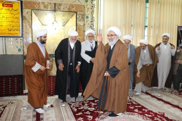 عیادت حضرت آیت الله معلمی از حضرت آیت الله فاضل در حوزه علمیه فیضیه در شهر بابل